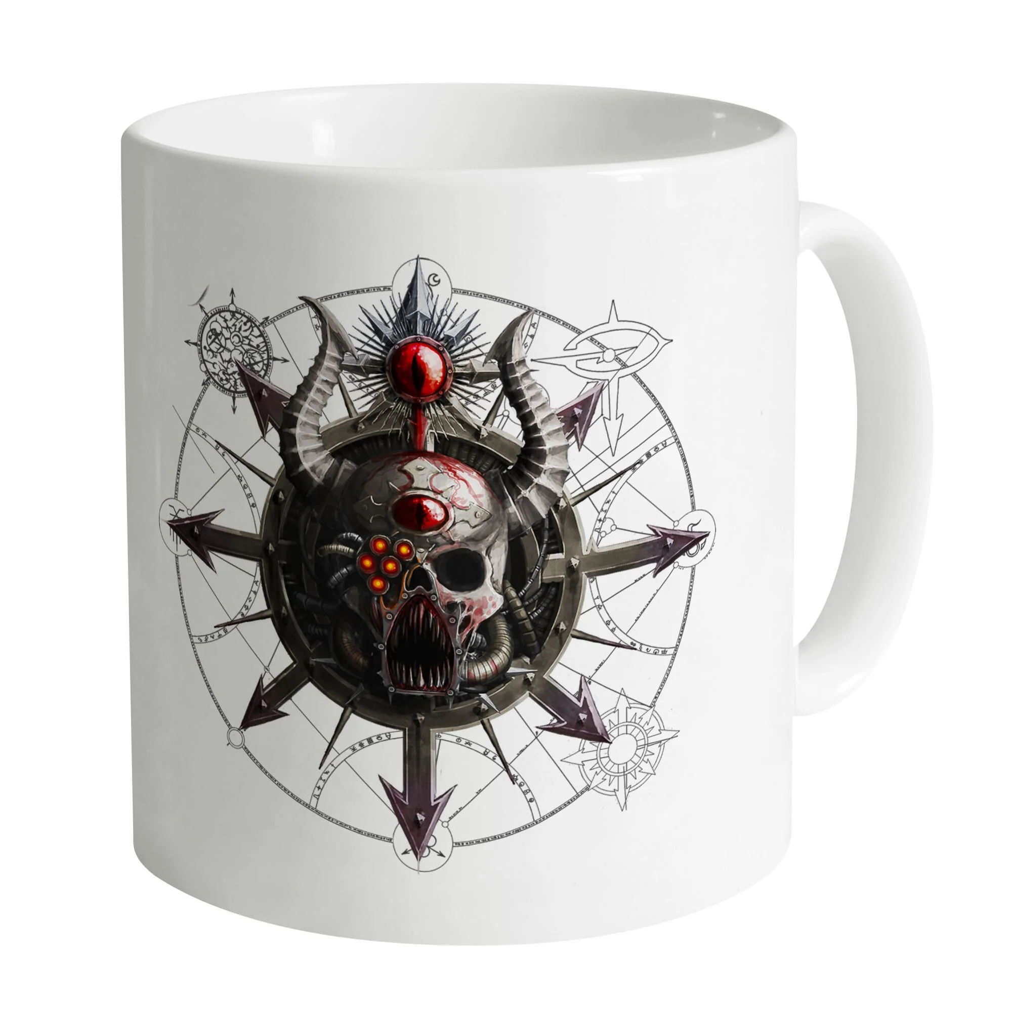 Official Chaos mug featuring 'Death To The False Emperor' slogan in Dark Tongue.